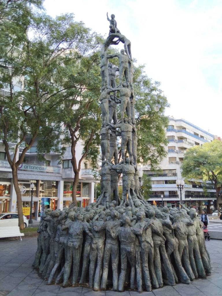 We park the car near Plaça Imperial which is now the main transport hub in the city and start our long walk towards the sea. After crossing the first road I can see a huge statue reaching up to the sky in front of me. It is the Castells monument that celebrates the human towers that are famous in Catalonia especially during the Santa Tecla festival in September. The statue reaches up 11 metres in the sky and had 222 individually cast bronze people who make up the tower. It all looks too dangerous to me and I’m glad it’s November!