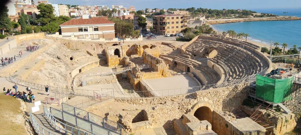 Luckily it’s just a short trot across the balcon and we can see the amphitheatre nestling between the cliffs and the sea below us. It’s a massive building and looks impressive even today. Tarragona (or Tarraco as it was known then) was on the main route along the coast of Iberia and it was the biggest and richest city on the peninsula. There was a forum, circus, walls, villas, aquaducts and of course the amphitheatre. It really was the place to be! The amphitheatre originally held 15000 people and as we look at the remaining building today, I wonder how many dogs sneaked in to watch the brave gladiators battle it out in the arena.